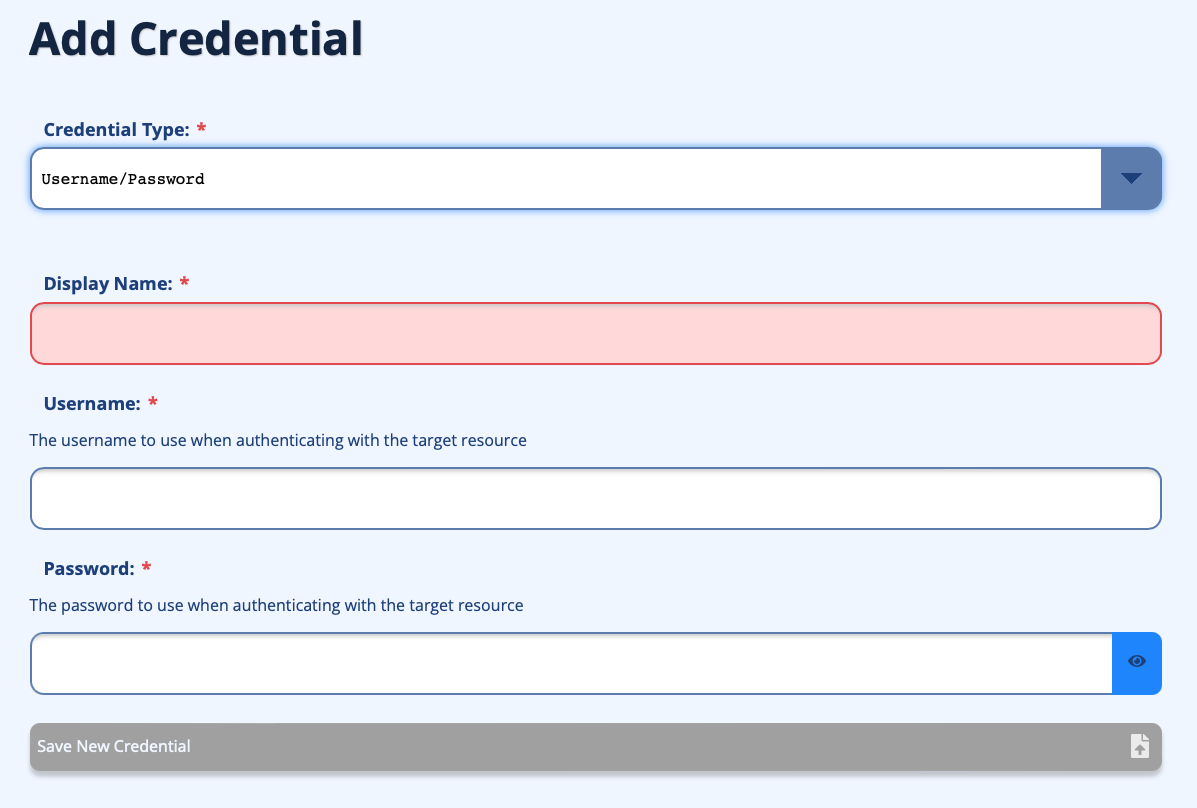 For details on the specific authentication details, refer to the support pages for the specific credential type.